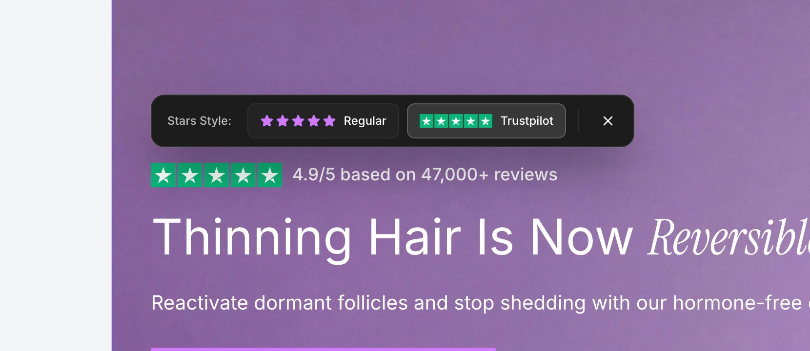 Click either the Regular or Trustpilot button. The currently active style has a highlighted border. The change applies immediately in the canvas.