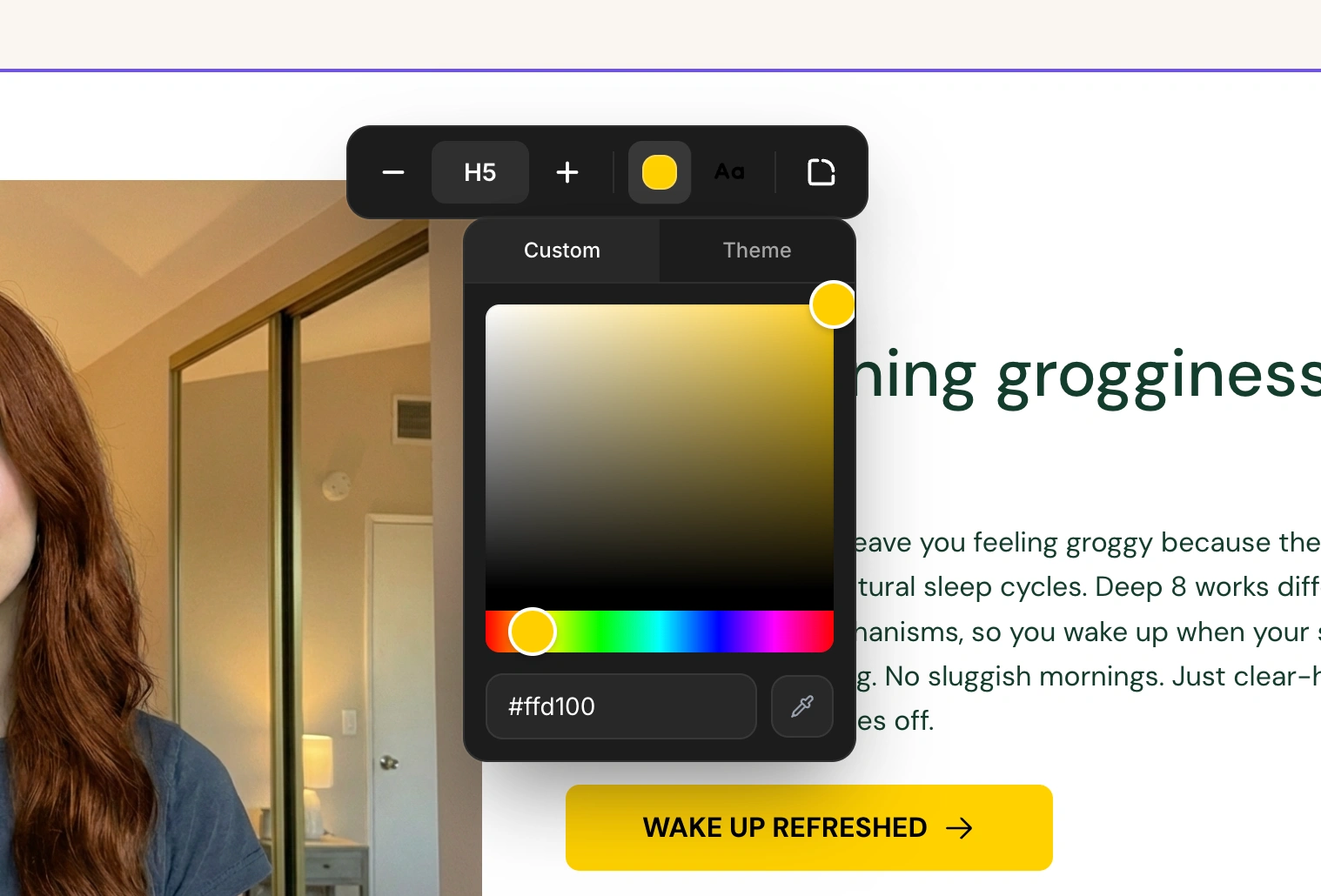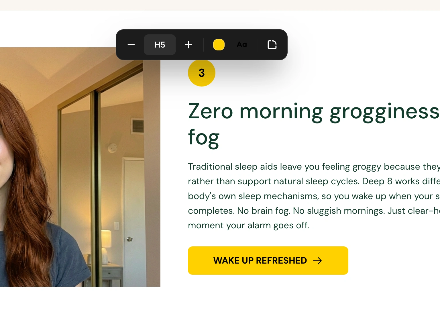 The left side of the toolbar contains text size controls, identical to the heading size system: