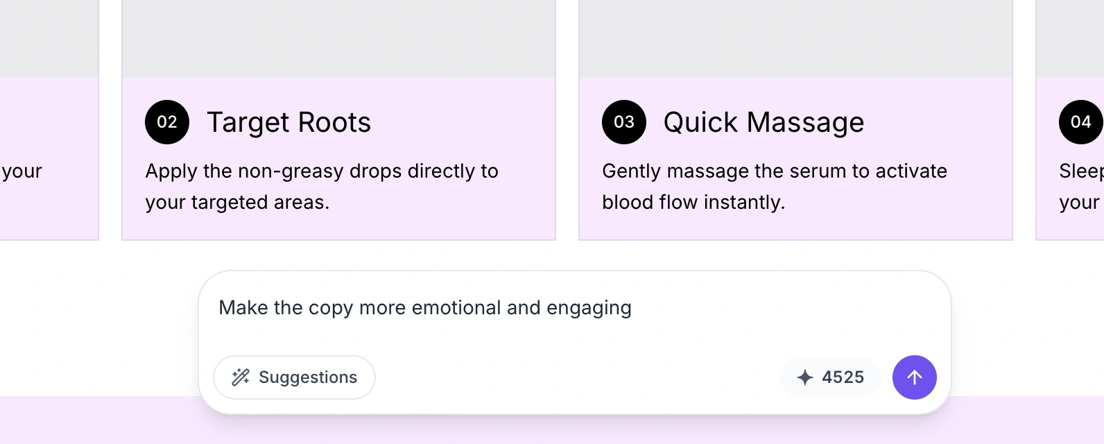 If none of the quick suggestions fit your needs, type a custom instruction in the chatbox input field. You can be as specific as you like.